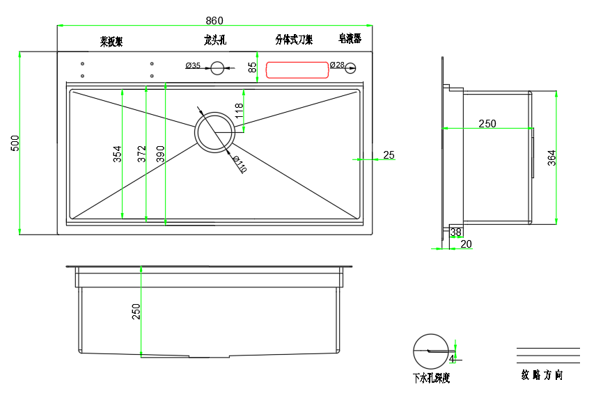 高端定制的细节可以根据目标市场的需求或公司的具体要求进行定制。为客户定制专属水槽。